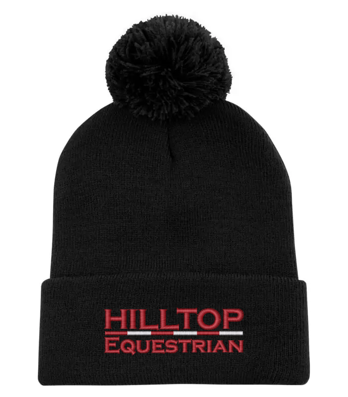 An acrylic knit pompom toque with a 3" cuff. Hilltop Equestrian embroidered logo on cuff.
